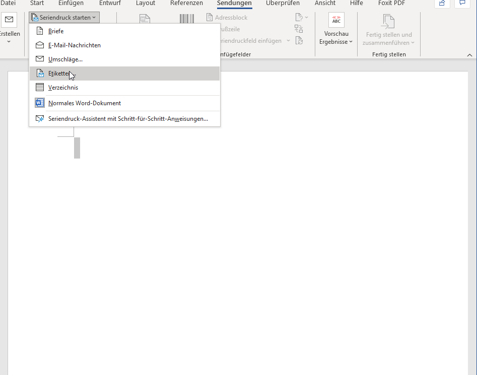 In MS Word: Sendungen 🡪 Seriendruck starten 🡪 Etiketten |