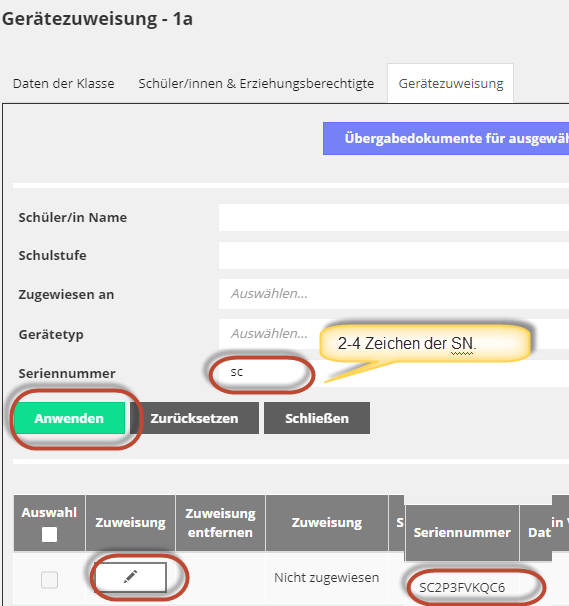 Die Zuordnung der Seriennummern zu den Schüler:innen ist erst möglich, wenn deren Erziehungsberechtige die AVB bestätigt haben.