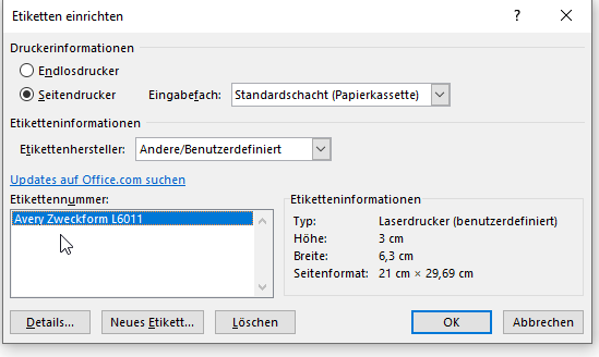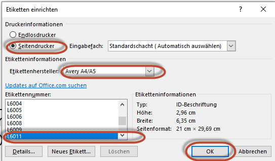 Diese permanent Klebeetiketten von AVERY Artnr.: L6011 haben sich bewährt: