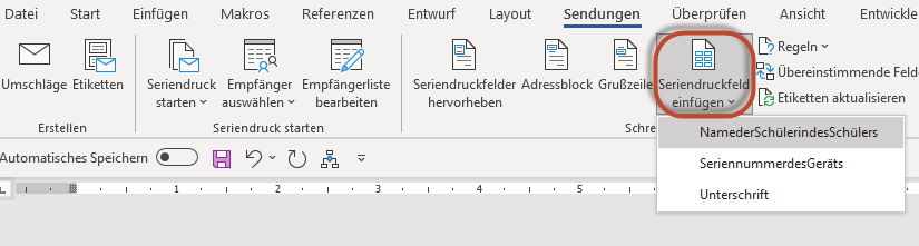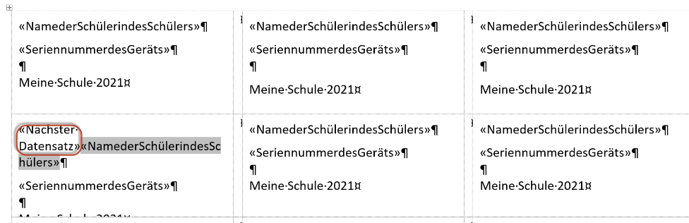 Wir wählen unsere Felder aus und weiteren Text. Aus Datenschutzgründen würde ich mit Daten zurückhaltend sein. Name, Klasse und Schule wären mir zu viel des Guten. |