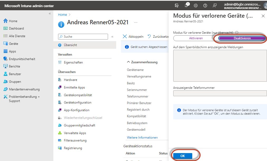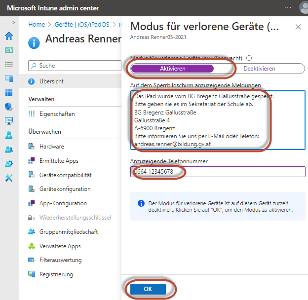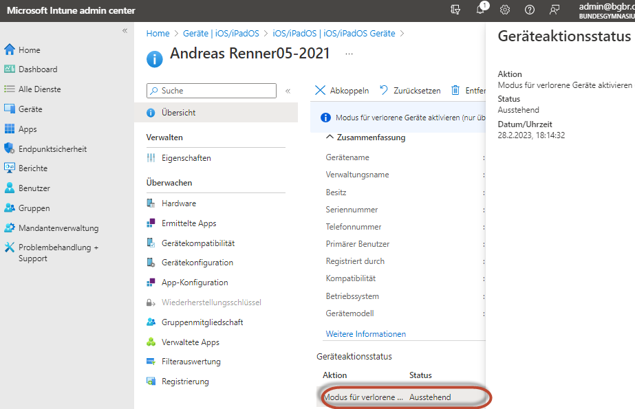 iPads werden verlegt, gehen verloren oder werden entwendet. In diesem Fall kann man die iPads in Intune sperren, sodass sie nicht mehr verwendbar sind. Gesperrte iPads kann man dann auch orten.