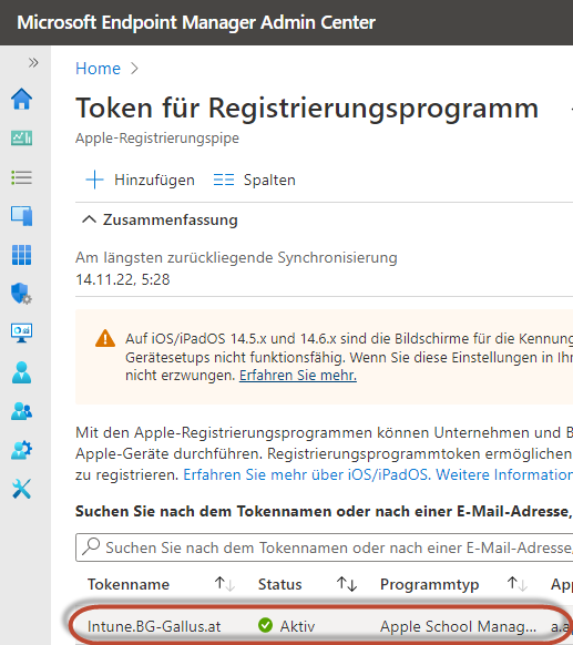 Wird die Vorlage für den Gerätenamen auch im Registrierungsprofil wieder aktiviert, so werden die Geräte nach einiger Zeit wieder nach Vorlage umbenannt.