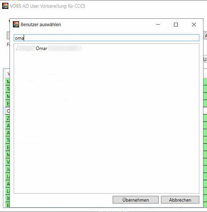 Umgehend nach dem Import gleicht das Programm die Namen aus der CSV-Datei mit den Namen im Active Directory ab. Dazu werden die Vornamen und die Nachnamen verglichen.