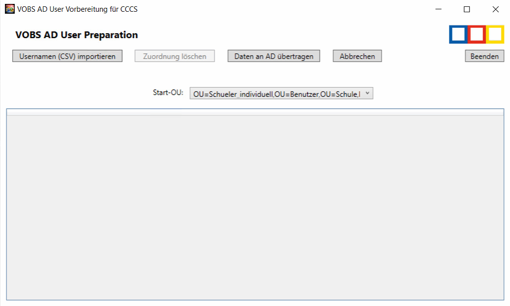 Grundsätzlich ändert das Programm nichts am Active Directory, bevor nicht bewusst die Schaltfläche "Daten an AD übertragen" betätigt wird.