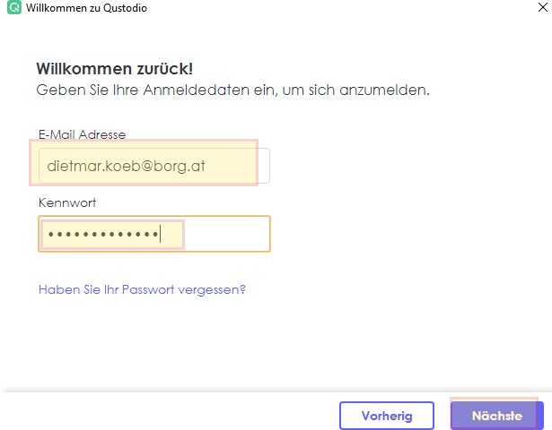 --> Logindaten von der Registrierung (Kap. 3.1) eingeben
