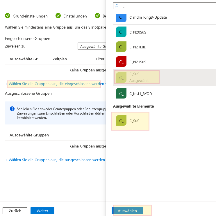 Wir implementieren dieses Skript deshalb nicht als „normales“ Powershellskript, sondern als „Proactives Remediations-Script“ („Proaktive Korrekturen“). Dafür ist neben dem „Hauptskript“ ein weiteres, das so genanntes „Detection-Script“ erforderlich.