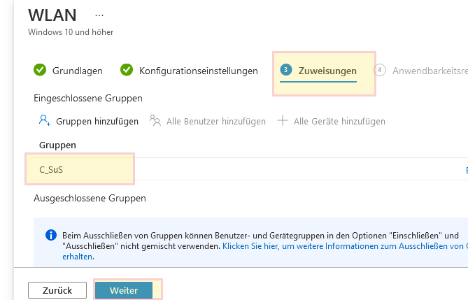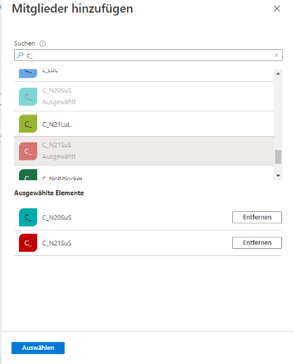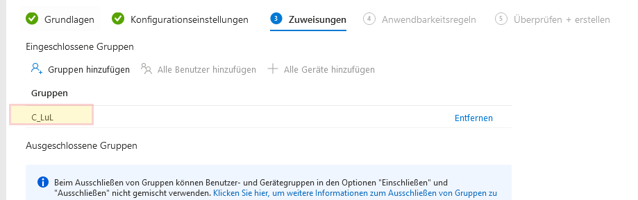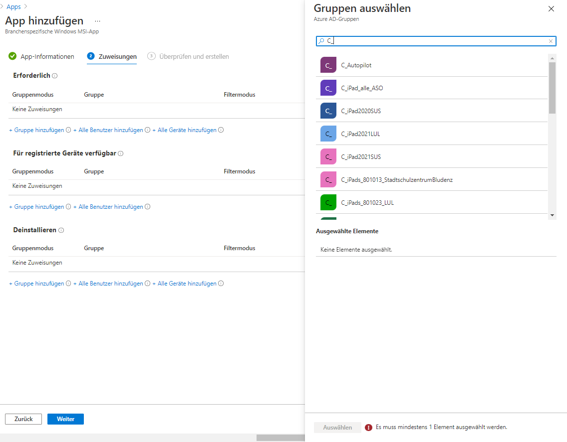 Analog zu den On-Premises Installationen vom VOBS verwenden wir auch in Intune für alle Gerätegruppen das Präfix “C_” und für alle Benutzergruppen “B_”.