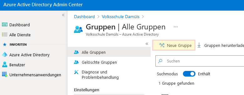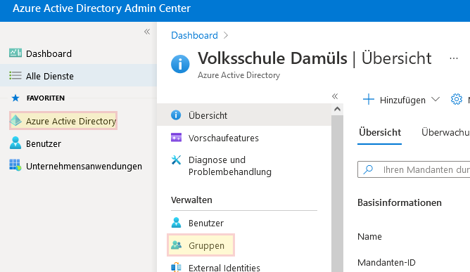 Da oder dort kann es auch erforderlich sein, dass wir über das „Azure Active Directory“ Portal auf gewisse Einstellungen zugreifen (z. B. im Bereich „dynamische Gruppen“).