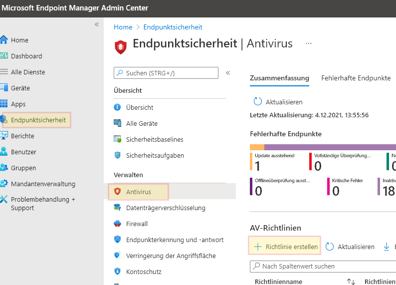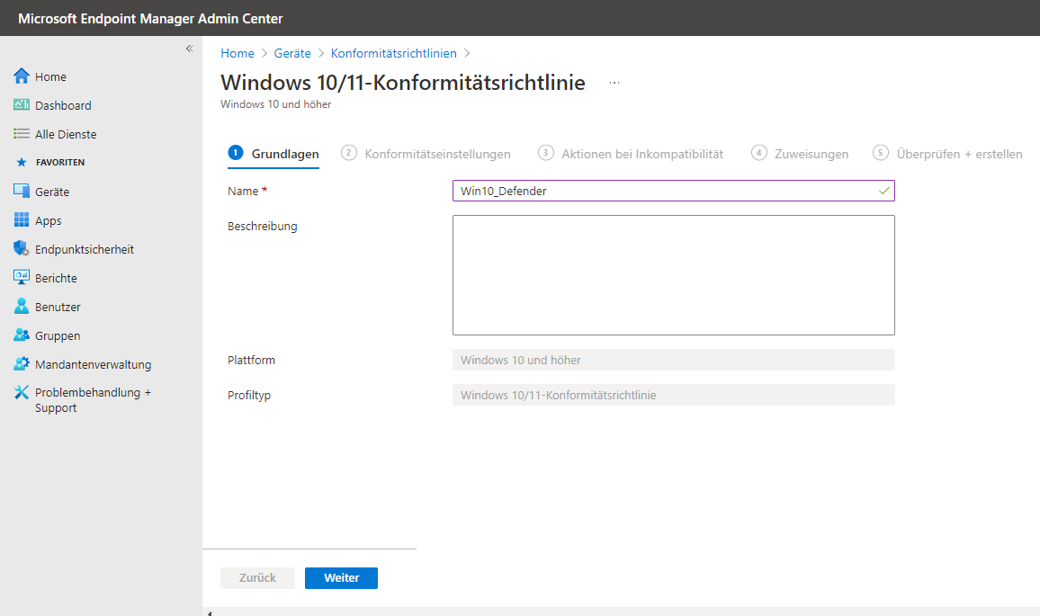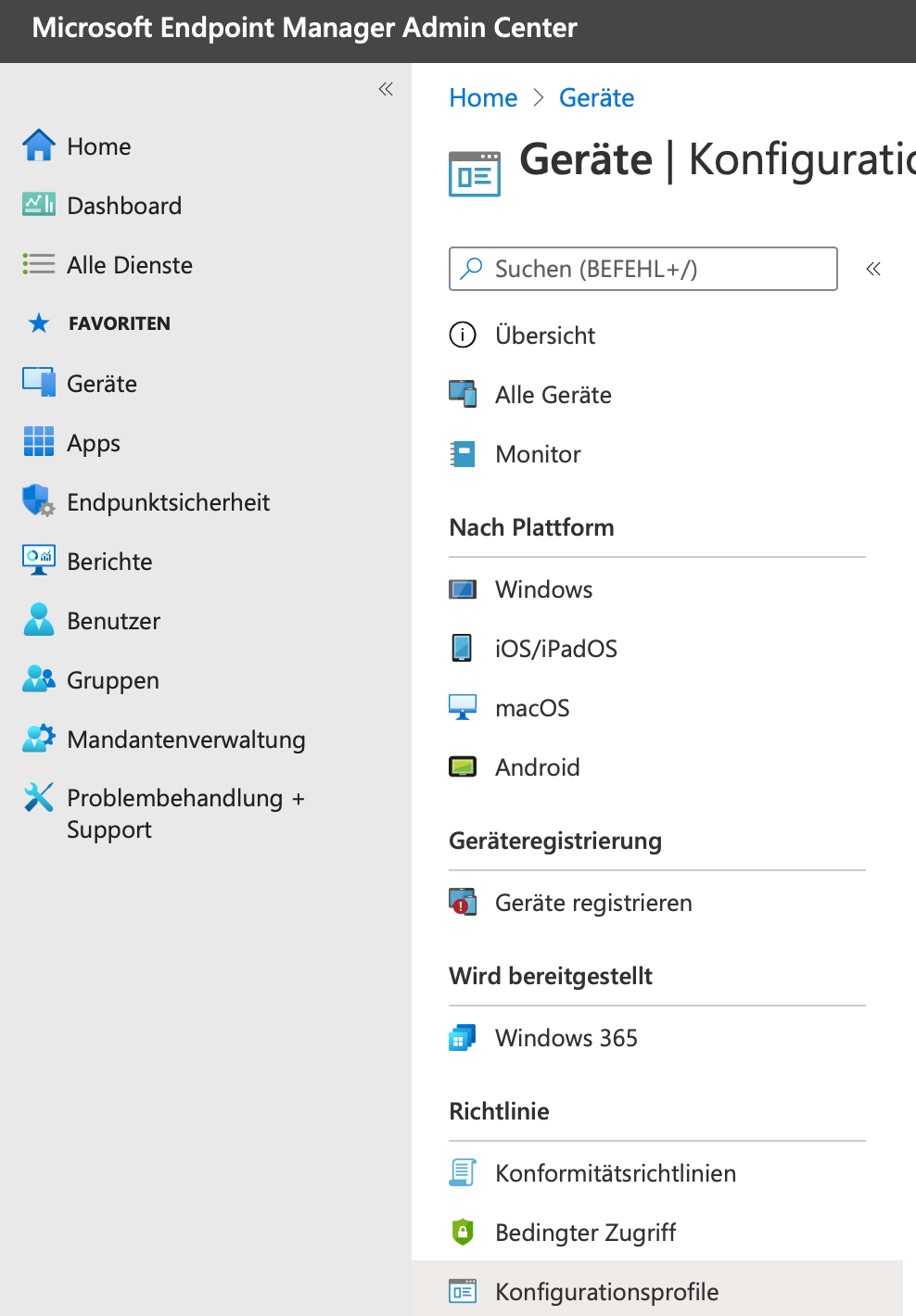 Damit gelangen wir zum „normalen“ Microsoft Endpoint Manager (Intune).