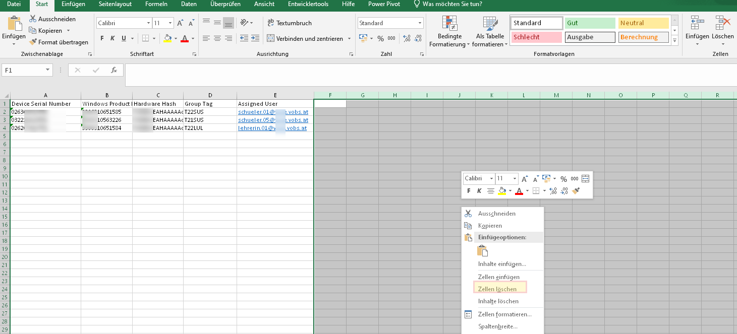 Der Übersicht zuliebe kopieren wir die versch. Hardware-Hashes in eine Exceldatei.