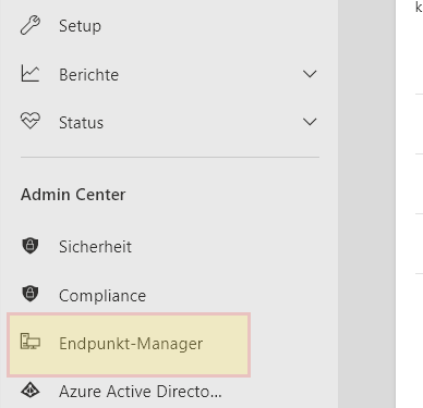 - A3-Lizenzen sind dem Tenant zugeordnet und der Menüpunkt „Endpoint Manager“ oder „Endpunkt-Manager“ ist im „Microsoft 365 admin center“ vorhanden
