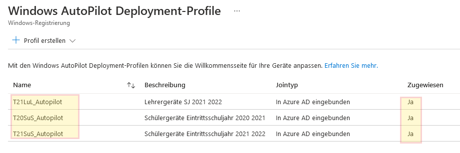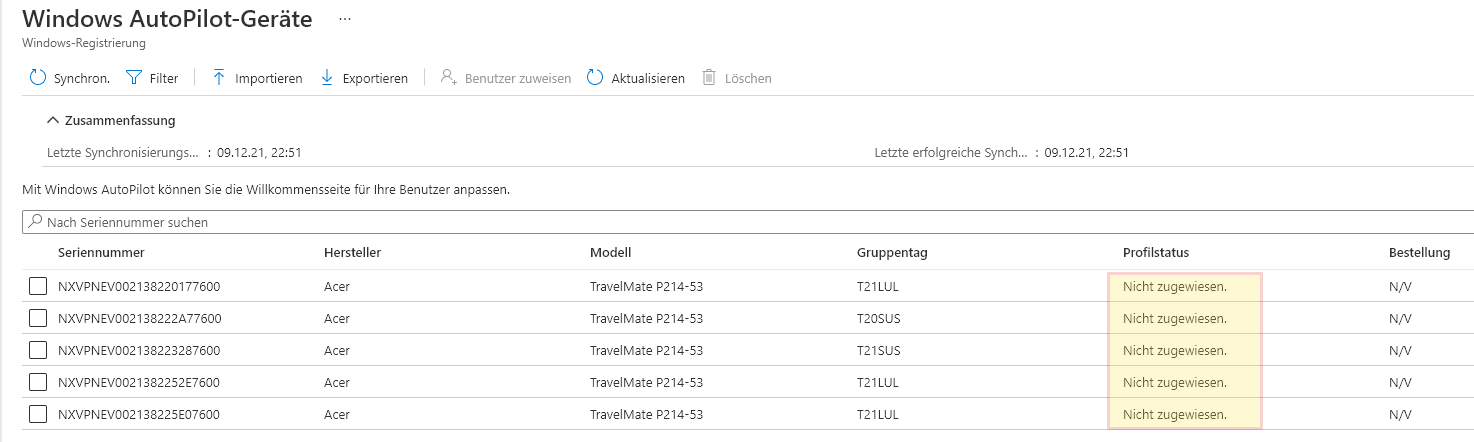 = alle Geräte vorhanden und bei allen steht bei Profilstatus „Zugewiesen“