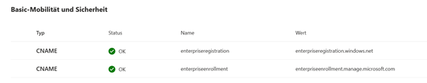 - CNAME – EnterpriseEnrollment und EnterpriseRegistration kontrollieren