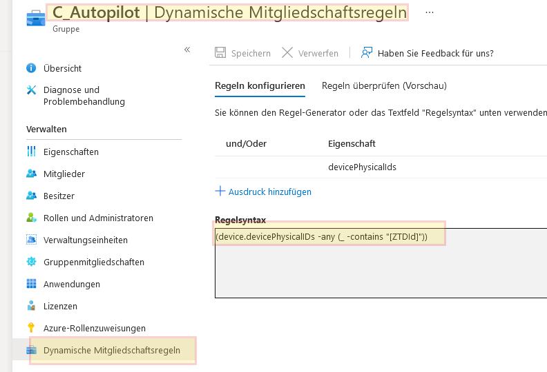 Dynamische Gerätegruppe für alle Autopilot registrierten Geräte