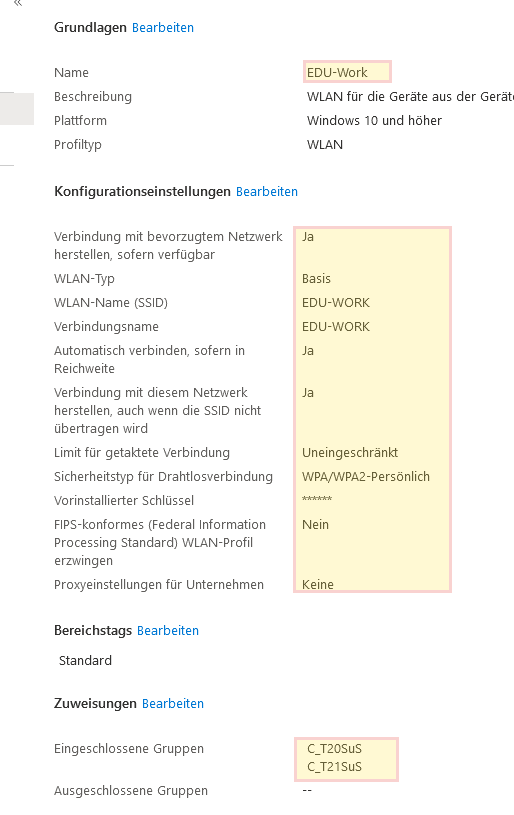 - Assigned User: Wird bei den Schülergeräten und Lehrergeräten verwendet. Damit ist auch vorab der Benutzer in Intune als Besitzer des Gerätes hinterlegt.