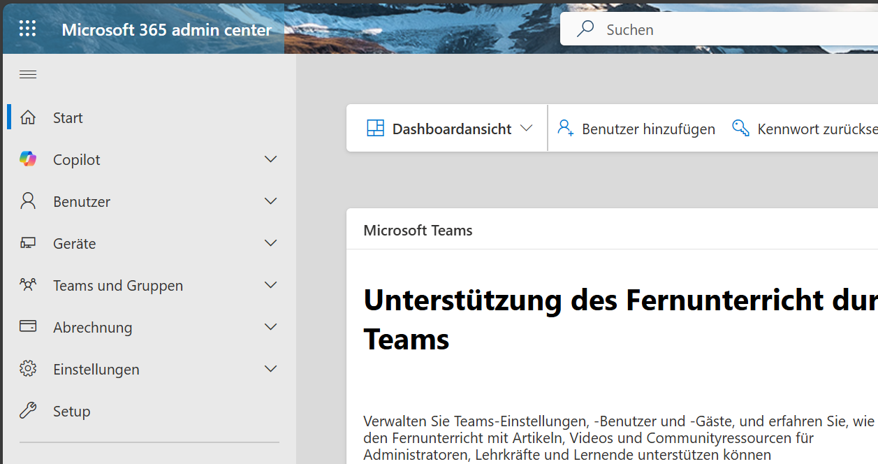 - Öffne das Admin Centers (https://admin.microsoft.com)