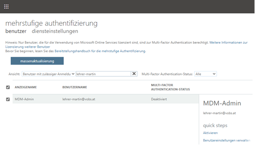 3.2 Multifaktor-Authentifizierung für normale Benutzer deaktivieren