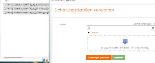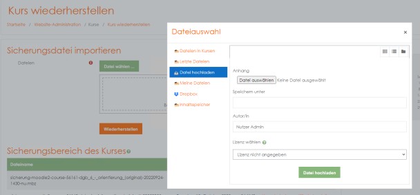 Alternativ können auch zuerst die einzelnen Sicherungen der Kurse hochgeladen werden. Dies kann wiederum im Punkt Kurs wiederherstellen gemacht werden: