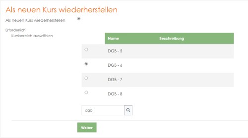 4. Kursbereich suchen und auswählen: der Kursbereich sollte eindeutig sein (z.B. DGB – 5)