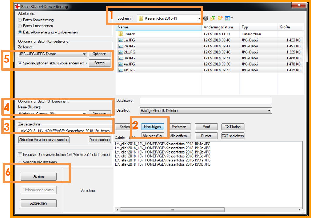 Beispiel: Umbenennen und Größenänderung mehrerer Fotos