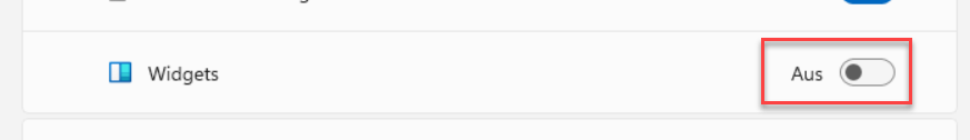 Deaktivieren des Schalters bei „Widgets“ - Aus.