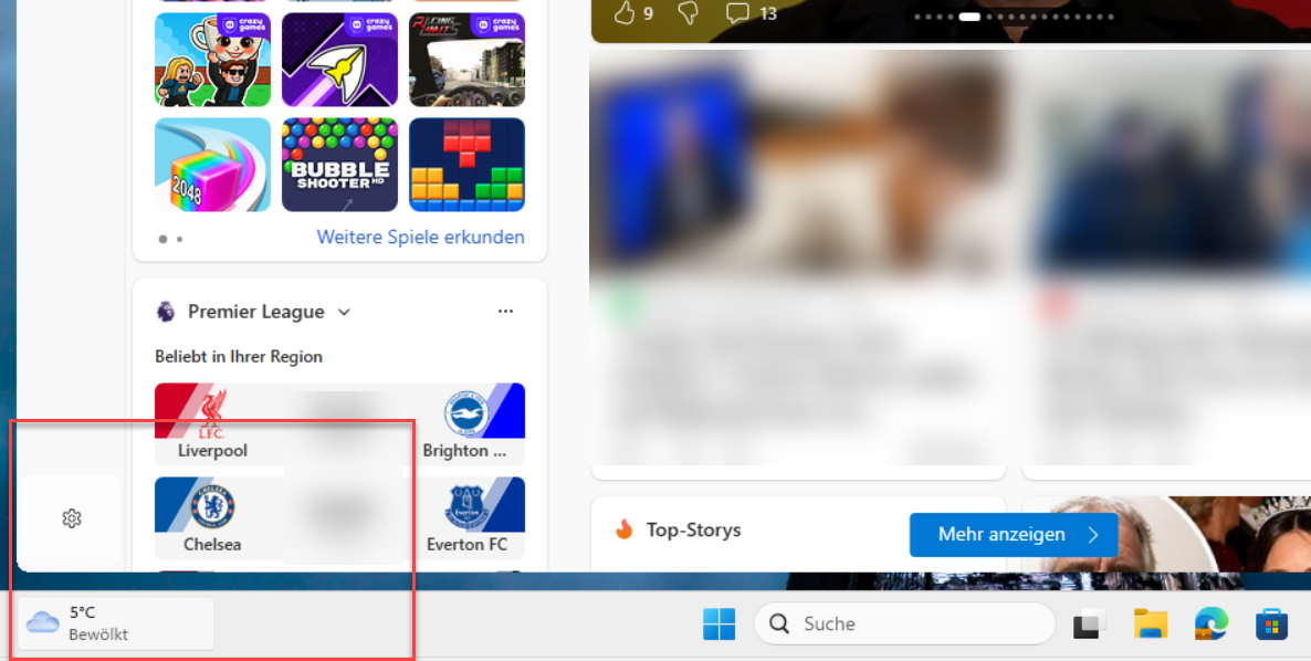 Widgets über Taskleisteneinstellungen deaktivieren
