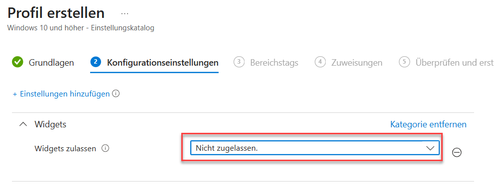 Widgets über Intune deaktivieren