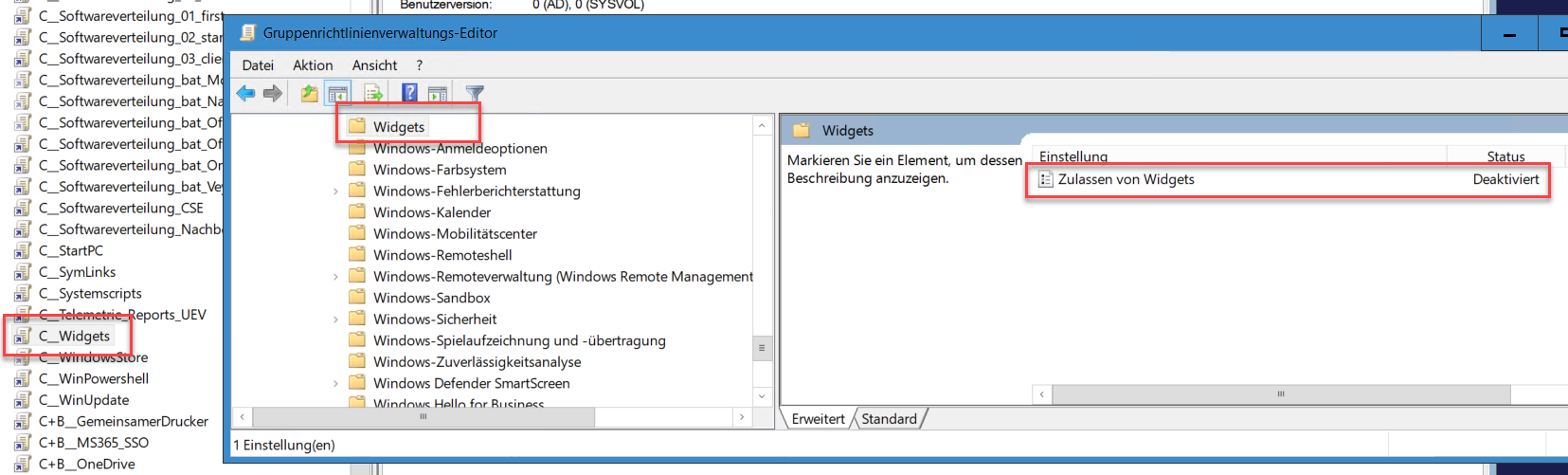 Erstellen einer neuen Gruppenrichtlinie zB "C__Widgets".